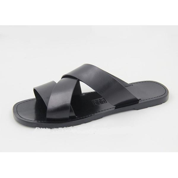 Fashion Mens Leather Slippers Flip Flops Black Mens Summer Leather Sandals Images |